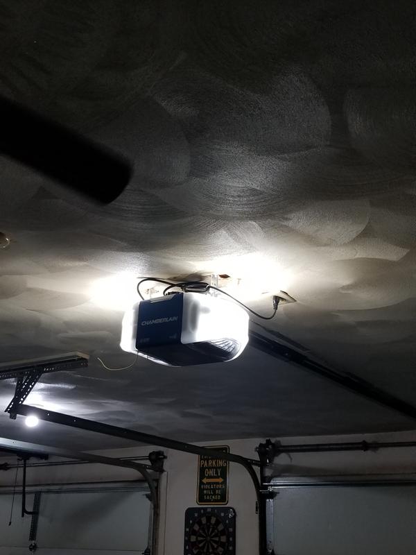This video will show you how to assemble and install a chamberlain garage door opener in a garage with a sectional door and a finished ceiling.